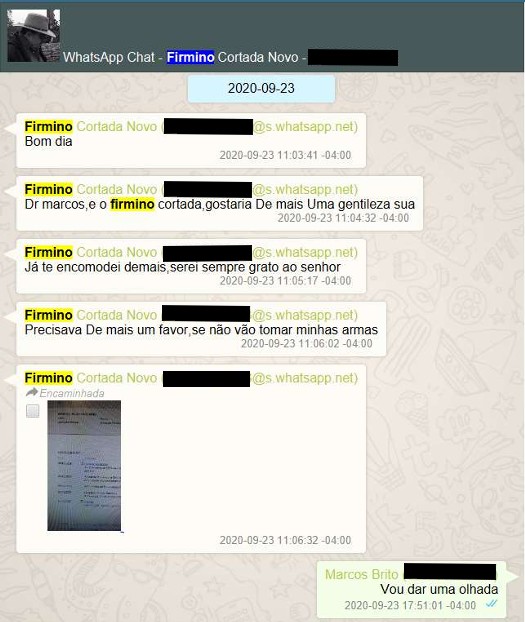 Em outro episódio, em setembro de 2020, o pecuarista voltou a procurar o magistrado pedindo ajuda em um processo criminal para evitar a perda de armas de fogo. Mais uma vez, o desembargador repassou o caso a um assessor e buscou informações sobre o relator.